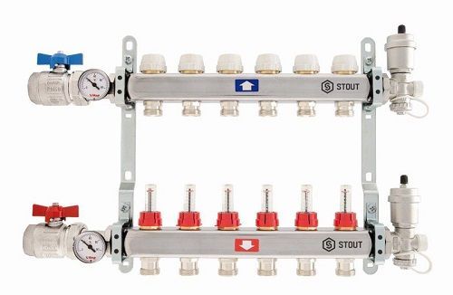Блок коллекторный Stout из нержавеющей стали с расходомерами 7 выходов