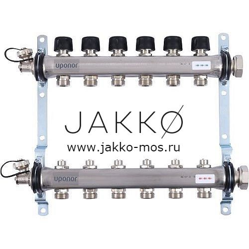Коллектор с клапанами Uponor стальной SMART S Выходы 7x3/4″ Евроконус
