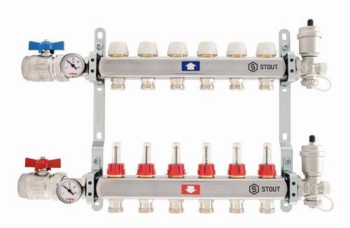Коллектор с расходомерами Uponor стальной SMART S Выходы 2x3/4 Евроконус